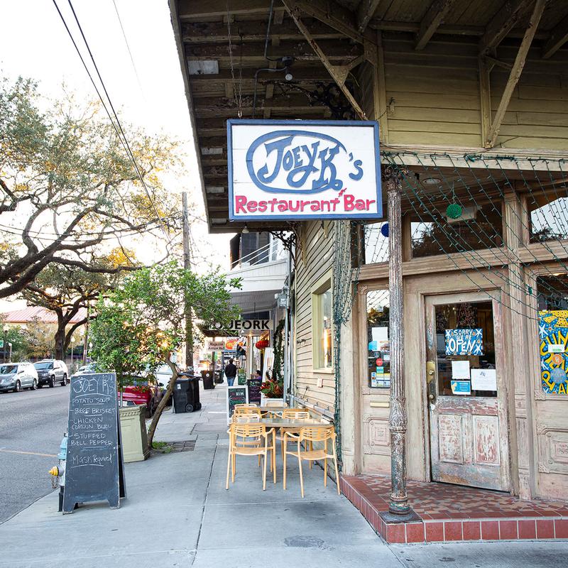 Located in the heart of the historic Garden District, Joey K's sits on the corner of Seventh & Magazine street - a six-mile stretch street with a unique flair - lined with antique stores, boutiques, art galleries, etc. Eat inside, outside, or pick up for eating at home.